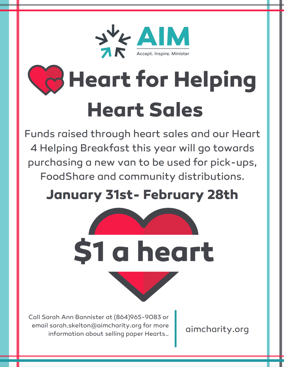 If your church, business, school, etc. would like to sell hearts please contact sarah.skelton@aimcharity.org or (706) 436-3046.